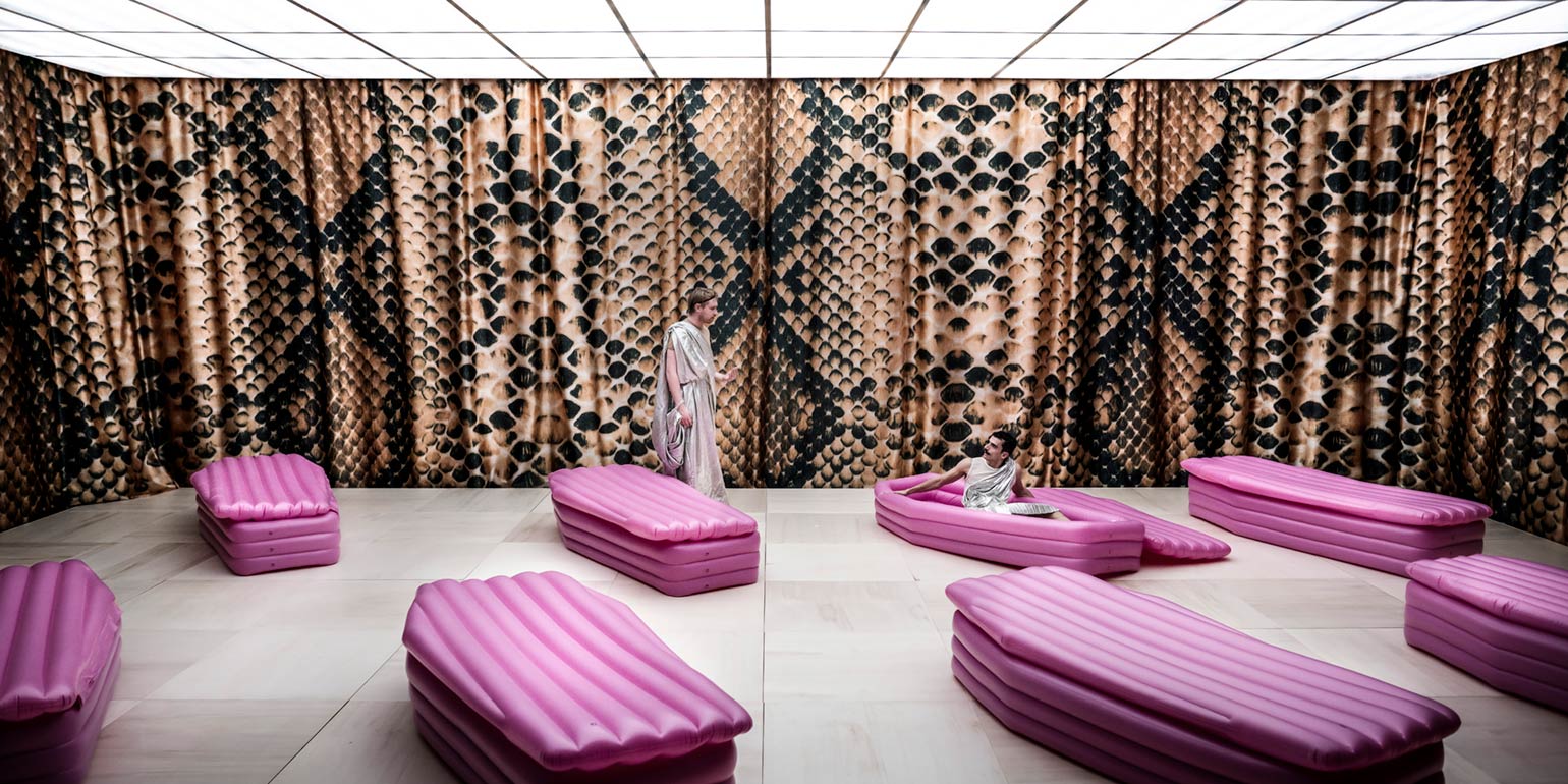Eco Satin is a soft polyester fabric with a glossy, luxurious texture. The level of gloss depends on the printed side. It’s commonly used for draperies, curtains, and premium in-store displays.