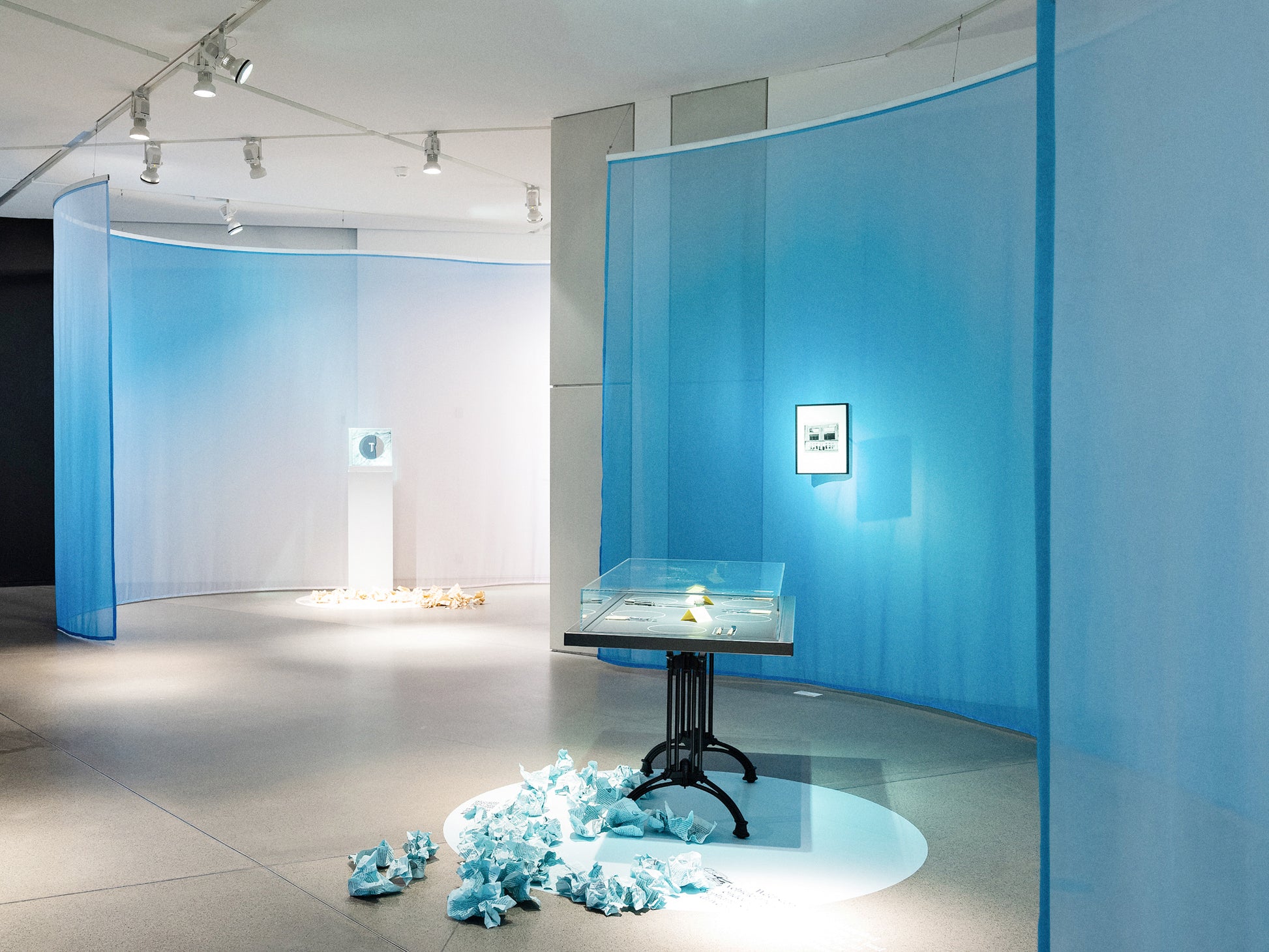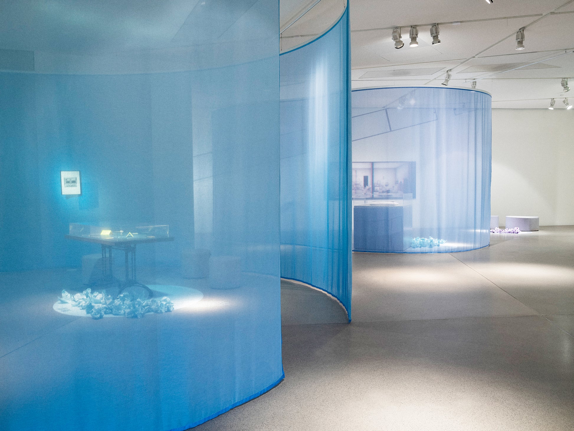 Trevira is a semitransparent textile made of 100% fire-resistant Trevira fibers. It’s often used in museums and exhibitions to create visual divisions in space without fully blocking visibility.